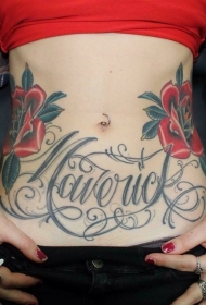 腰部老学校的风格色彩的玫瑰纹身