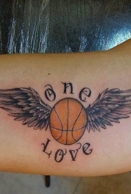 手臂插画风格彩色翅膀与篮球纹身