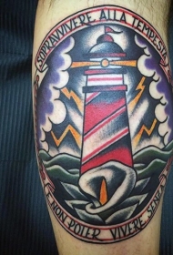 手臂彩色灯塔在风暴中纹身图案