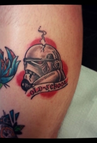 腿部彩色老学校风格风暴骑兵头盔纹身