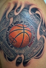 令人惊叹的彩色刻字篮球标志纹身