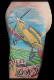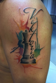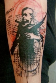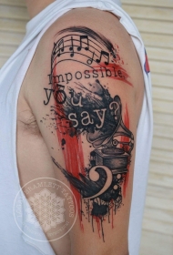 肩部PS图象处理软件风格的彩色老留声机纹身