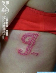 美女侧腰流行精美的哥特字母纹身图片