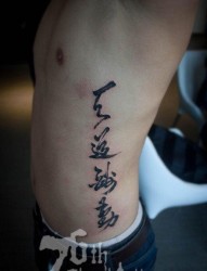 侧腰流行精美的书法汉字纹身图片