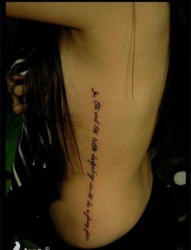 美女侧腰前卫唯美的花体字母纹身图片