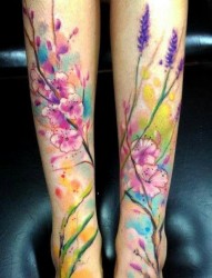 女人腿部和手部好看的字母与薰衣草纹身图片