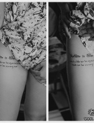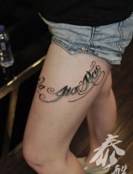女人腿部流行精美的花体字母纹身图片