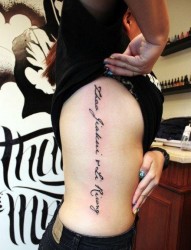 美女侧腰流行前卫的花体字母纹身图片