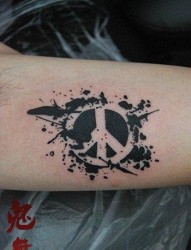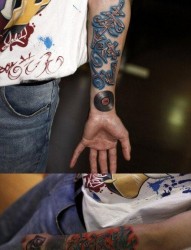 手臂前卫经典的图腾汉字与点刺图腾纹身图片