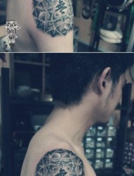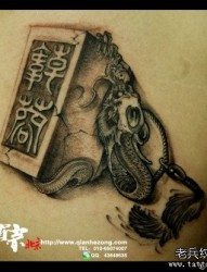 肩膀处石雕烙印与浮雕汉字纹身图片