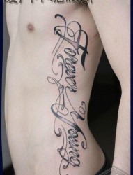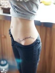 美女腹部到腰部前卫很酷的哥特字母纹身图片