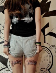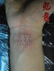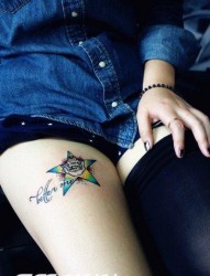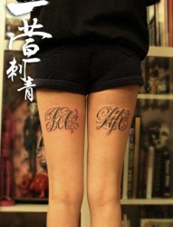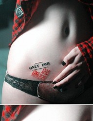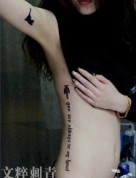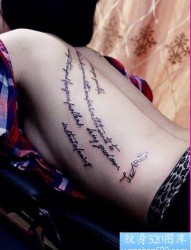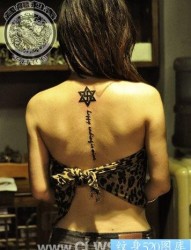 女人后背小巧时尚的钻石与花体字母纹身图片
