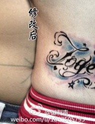 美女腰部好看的花体字母纹身图片