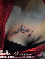 美女胸部流行漂亮的花体英文字母纹身图片