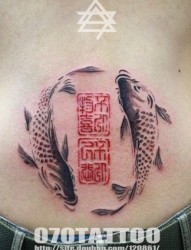 腰部唯美流行的印章汉字纹身图片