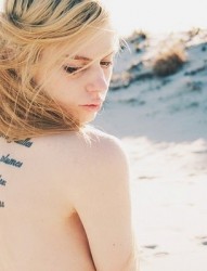 女性后背一块英文字符刺青