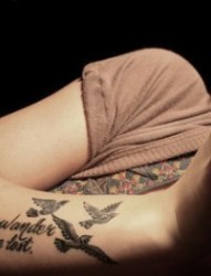 女性肋部小小的英文刺青