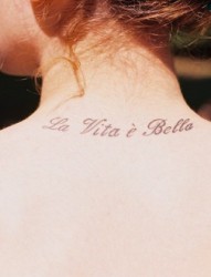 女人颈部小巧的英文纹身