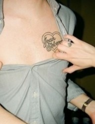 男人胸部心形英文欧美刺青