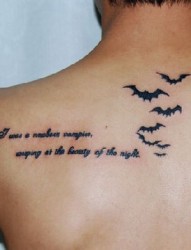 男生后背蝙蝠英文刺青