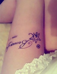 女性大腿图腾英文刺青