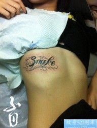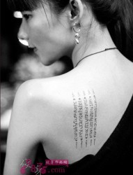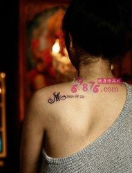 美女香肩英文时尚纹身