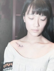 小美女锁骨英文纹身