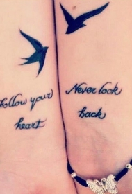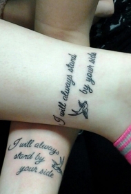 手腕友谊之鸟与字母纹身图案