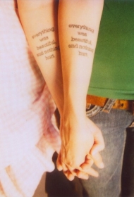 手臂象征爱情的情侣英文纹身图案