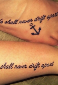 脚部英文字母闺蜜友谊纹身图案