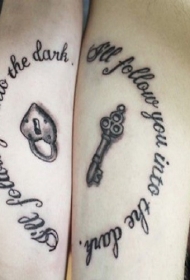 手臂上的锁与钥匙爱情纹身图案
