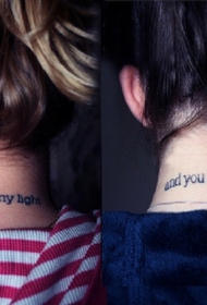 友谊在脖子上的英文字母纹身图案
