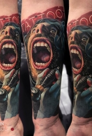 手臂新的学校风格彩色尖叫的人纹身图案