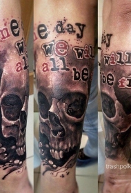 手臂黑灰骷髅头与字母纹身图案