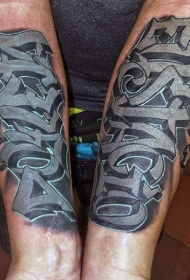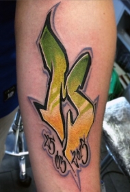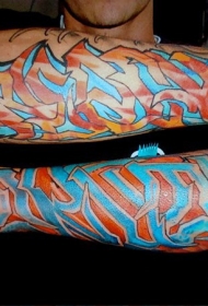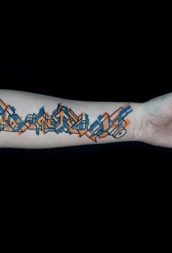 手臂涂鸦式的彩色字母花体纹身图案
