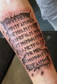 手臂古代字母刻字纹身图案