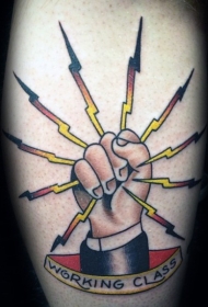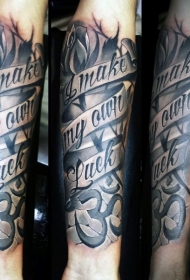 手臂老学校的风格色彩的口号标志纹身