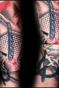手臂PS图象处理软件风格的彩色刀片纹身