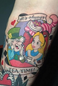 小臂爱丽丝梦游仙境童话和英文字母纹身图案