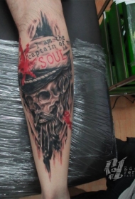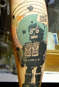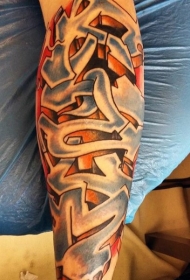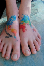 小腿现代传统风格的彩色泼墨吉他纹身图案