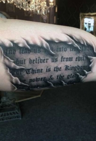 手臂华丽的英文字母与撕皮纹身图案