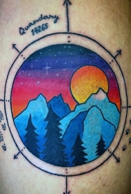 手臂五彩的夜晚山脉纹身图案