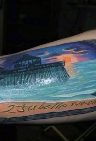 手臂彩色美丽的海洋日落和字母纹身图案