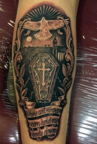 手臂华丽的棺材字母和鹰纹身图案
