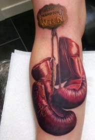 手臂纪念式的彩色拳击手套和字母纹身图案