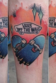 小小的五彩断裂滑板与字母手臂纹身图案