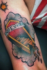 手臂彩色的破碎棺材和云朵字母纹身图案