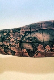手臂航海世界地图与字母纹身图案