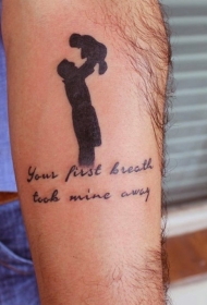 手臂感伤的黑色父子字母纪念纹身图案