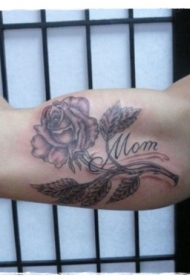 大臂纪念字母和玫瑰纹身图案